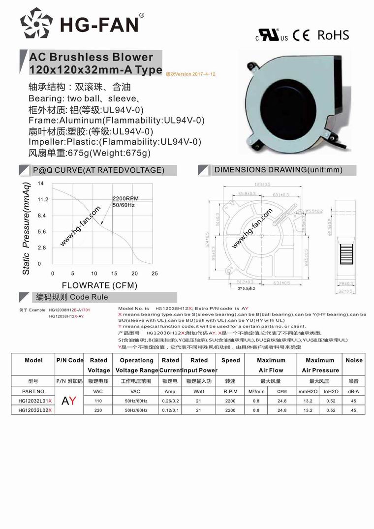 產(chǎn)品名稱:120x120x32mm 220V AC