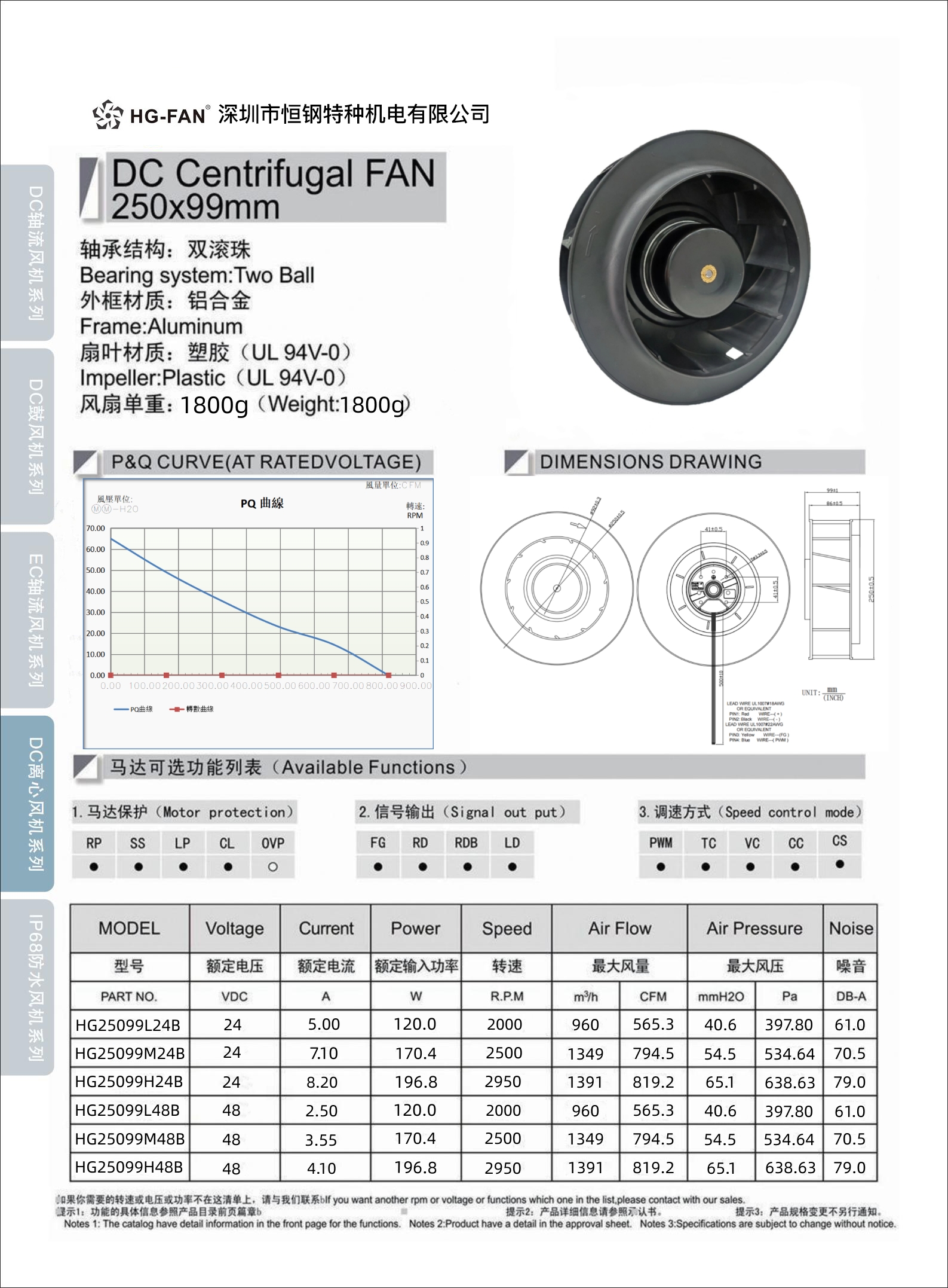 支持PWM無極調(diào)速功能,FG轉(zhuǎn)速偵測功能,RD堵轉(zhuǎn)報警功能.