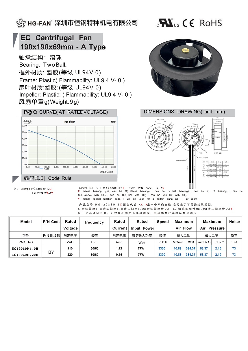 產(chǎn)品名稱:EC交流變頻離心風(fēng)扇190X69MM