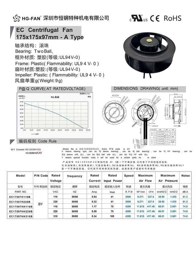 產(chǎn)品名稱:EC交流變頻后傾離心風(fēng)扇175X69MM